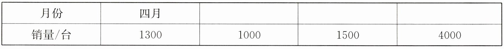 1. 某电器商场统计空调的销量。四月份空调销量为1300台,比五月份的销量少一些,六月份空调的销量比四月份多得多。五、六月份的空调销量各是多少台?请你在下表中写出来。(8分)
