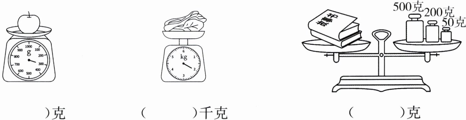 四、下面的物品有多重?填一填。(每空4分,共12分)