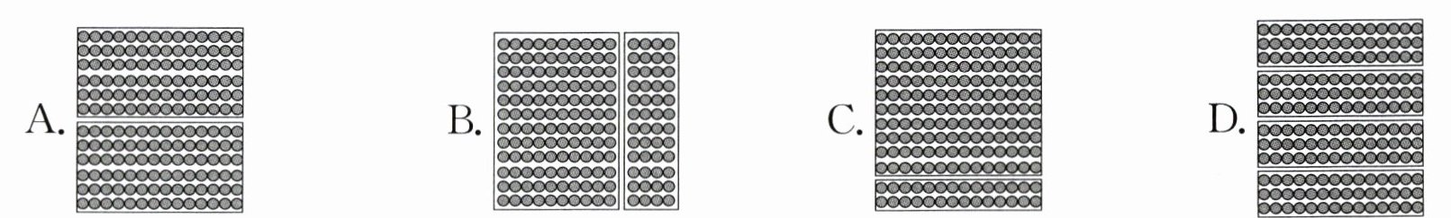 3. 在计算$14\times12$时,依依是这样想的:$14\times10 = 140$,$14\times2 = 28$,$140 + 28 = 168$,下面能表示她思考过程的图是( )。
