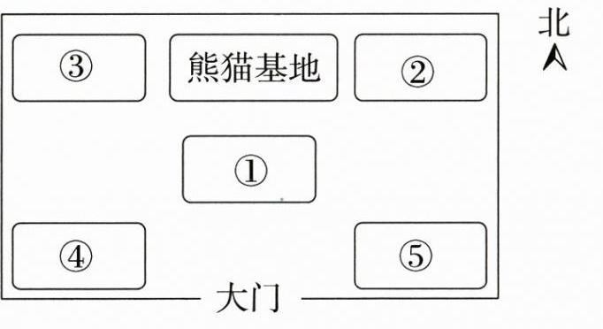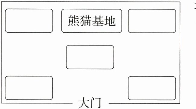 走进动物园大门,看到鹿园和熊猫基地在动物园的北面,大象住在熊猫基地的东面,猴山在熊猫基地的西面,动物园西南角住着狮子,东南角住着老虎。
