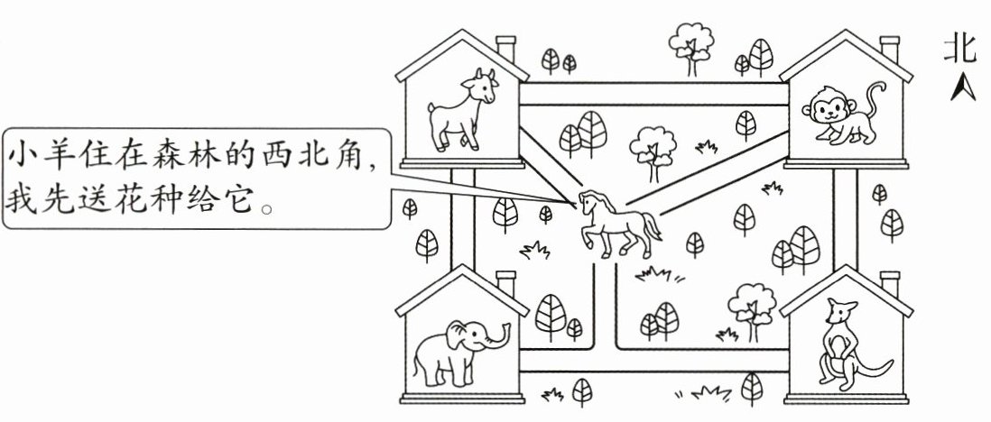(1)大象住在森林的( )角,袋鼠住在森林的( )角,小猴子住在森林的( )角。(3分)