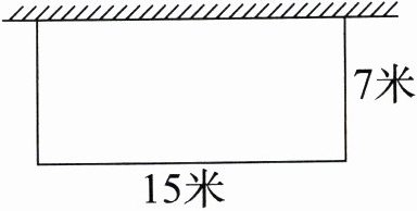 1. 如图,淘淘奶奶靠墙用篱笆围了一个长方形的菜园,菜园长15米,宽7米。(20分)