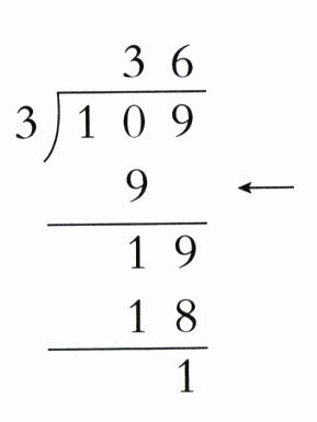 2. 苹苹将109朵花每3朵扎成一束,可以扎多少束?竖式中箭头所指的数表示的是( )。
