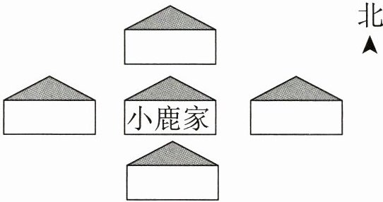 1. 小猴、小鸡、小兔和小狗要来做小鹿的邻居啦。请你给它们安排新家(填在图中方框里),并写出它们分别住在小鹿家的什么方向。(8分)