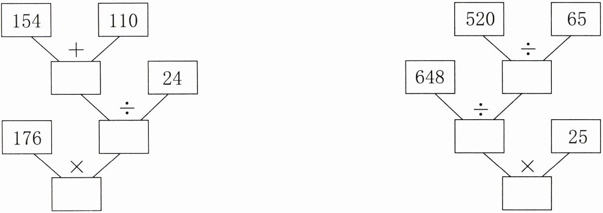 4. 按照顺序计算并填写下面的□,然后列出综合算式。(8分)