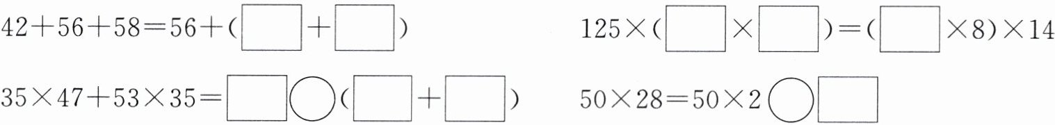 42+56+58=56+(□+□) 125×(□×□)=(□×8)×14