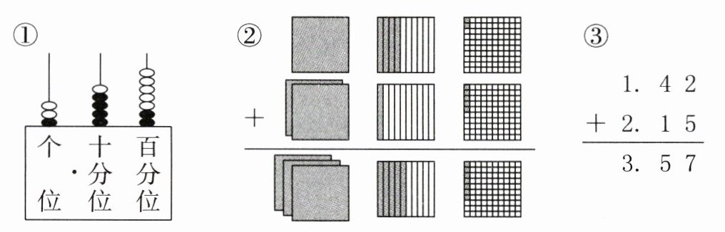1. 如图,在下面计算1.42+2.15的方法中,()是合理的。