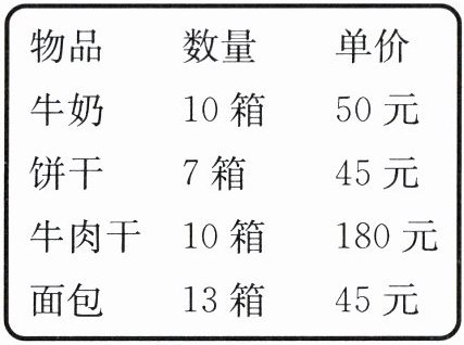 50 10 购进的牛奶和牛肉干一共花多少钱;13 7 购进的面包比饼干多花多少钱