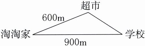 4. 如图,淘淘从家出发,经过超市到学校,然后直接从学校走回家,正好走了三角形的三条边。淘淘可能一共走了( )m。