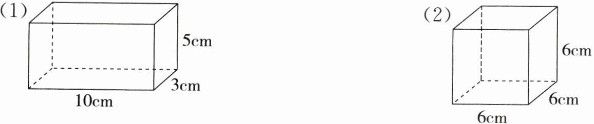 (1)表面积:(10×3 + 10×5 + 3×5)×2 = 190(cm²) 体积:10×3×5 = 150(cm³)