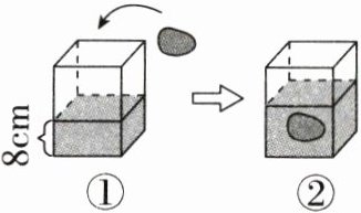 5. 如图所示,长方体容器底面的长是15cm,宽是10cm,原来水面高8cm,已知这块完全浸没的石头的体积是960cm³,这时水面的高度是( )cm。