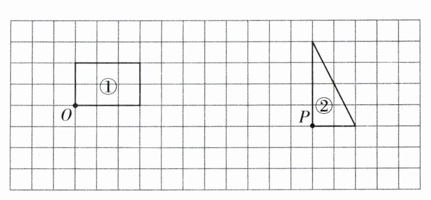 2. (重庆真题)画出图①绕点O顺时针旋转90°后的图形,图②绕点P逆时针旋转90°后的图形。(18分)