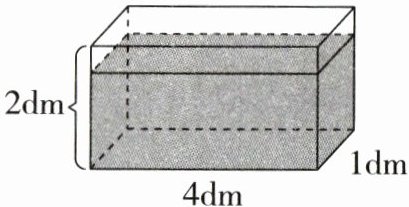 5. 一个密封的长方体容器如图,长4dm、宽1dm、高2dm,里面水深1.8dm,如果把这个容器的左侧面作为底放置,这时水深为多少分米? (6分)