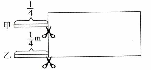 5. 如右图,甲、乙两张纸条各被剪去全长的“$\frac{1}{4}$”“$\frac{1}{4}m$”,原来的甲、乙纸条相比,( )。