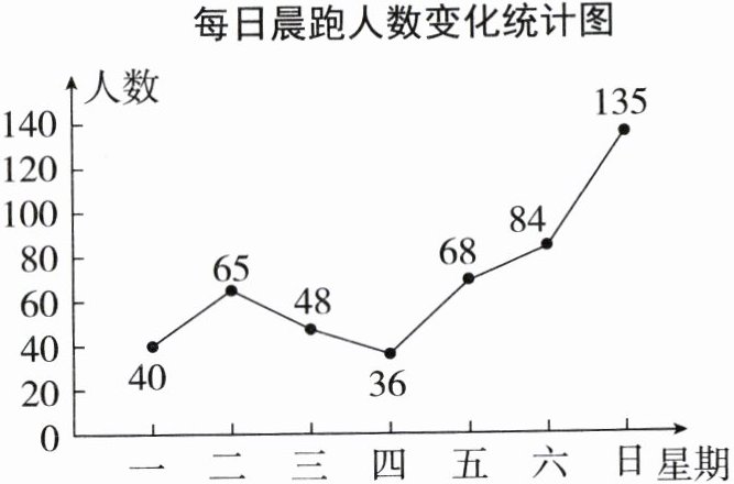 6. 奥运会带动了全民运动。如图是某大型公园一星期内每日晨跑人数变化统计图,下面说法错误的是( )。
