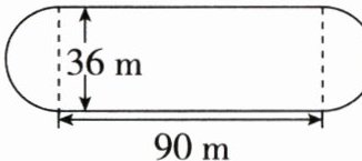 3. 在运动会开幕式上,学校用无人机进行现场直播。无人机绕着运动场边缘飞行了3圈,这个运动场由一个长方形和两个半圆形组成(如图)。这架无人机共飞行了多少米? (5分)