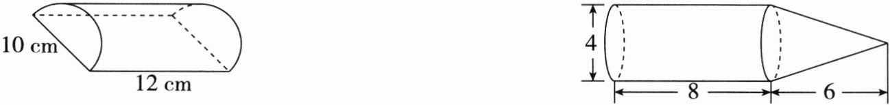 3. 求下面半圆柱的表面积。 4. 求下面图形的体积。(单位:dm)