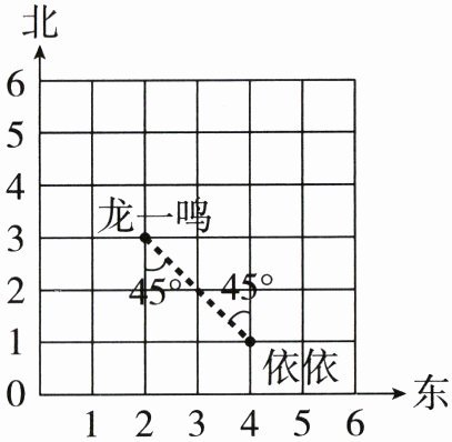 (2)龙一鸣在依依( )偏( )( )°方向上,依依在龙一鸣( )偏( )( )°方向上。
