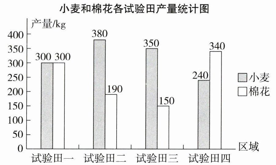 (2)试验田( )的小麦产量最多,试验田( )的棉花产量最多。
