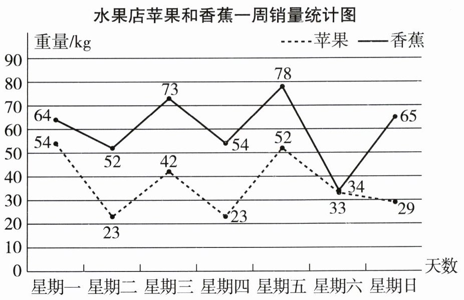 8. 右图是某水果店苹果和香蕉一周销量统计图,下面说法正确的是( )。