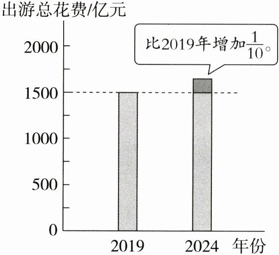 20. 踏入三星堆遗址,场馆内游客人山人海。据调查,2024年“五一”假期,全国文化和旅游市场总体呈增长趋势,国内游客出游总花费统计图如下。2024年“五一”期间国内游客出游总花费比2019年增加了多少亿元?(6分)