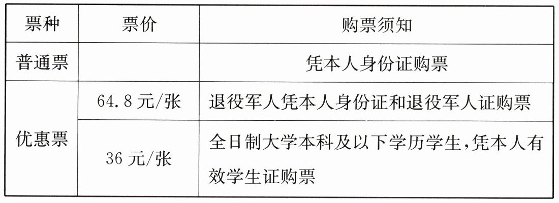 19. 三星堆票价信息如图。龙一鸣的爷爷是一名退役军人,他按照普通票九折购买的优惠政策,购买了一张优惠票,普通票票价为多少元?(6分)