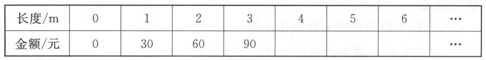15. 龙一鸣的妈妈去商场购买丝绸,购买丝绸的长度与所需要的金额如下表。