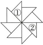 6. 如图可以看作是一个等腰直角三角形连续旋转形成的,从①号位置旋转到②是绕中心点( )方向旋转了( )。