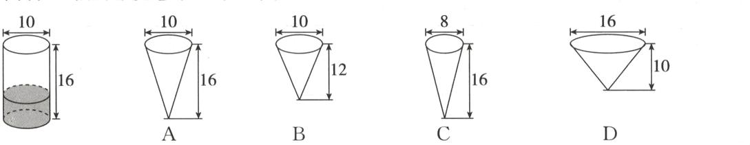 13. 在一个圆柱形桶(如左下图)内,水的体积占圆柱形桶的容积的$\frac{1}{3}$,将水倒入圆锥形桶( )内正好倒满。(桶的厚度忽略不计)(单位:cm)