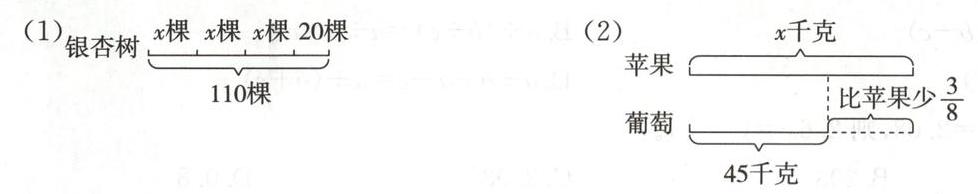 (2)$x-\frac{3}{8}x = 45$ $x = 72$