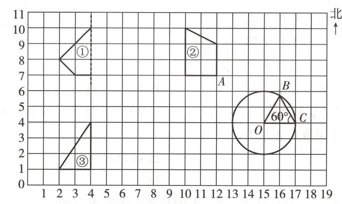 (3)按2:1的比画出图形③放大后的图形。(3分)