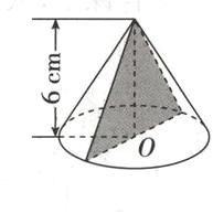26. 如图,将一个圆锥从顶点沿底面直径切成两半后,表面积增加了48 cm²,求圆锥的体积。(8分)