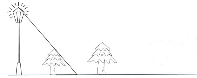 25. 下图中,已经画出了小树的影子,你能画出大树的影子吗?(2分)