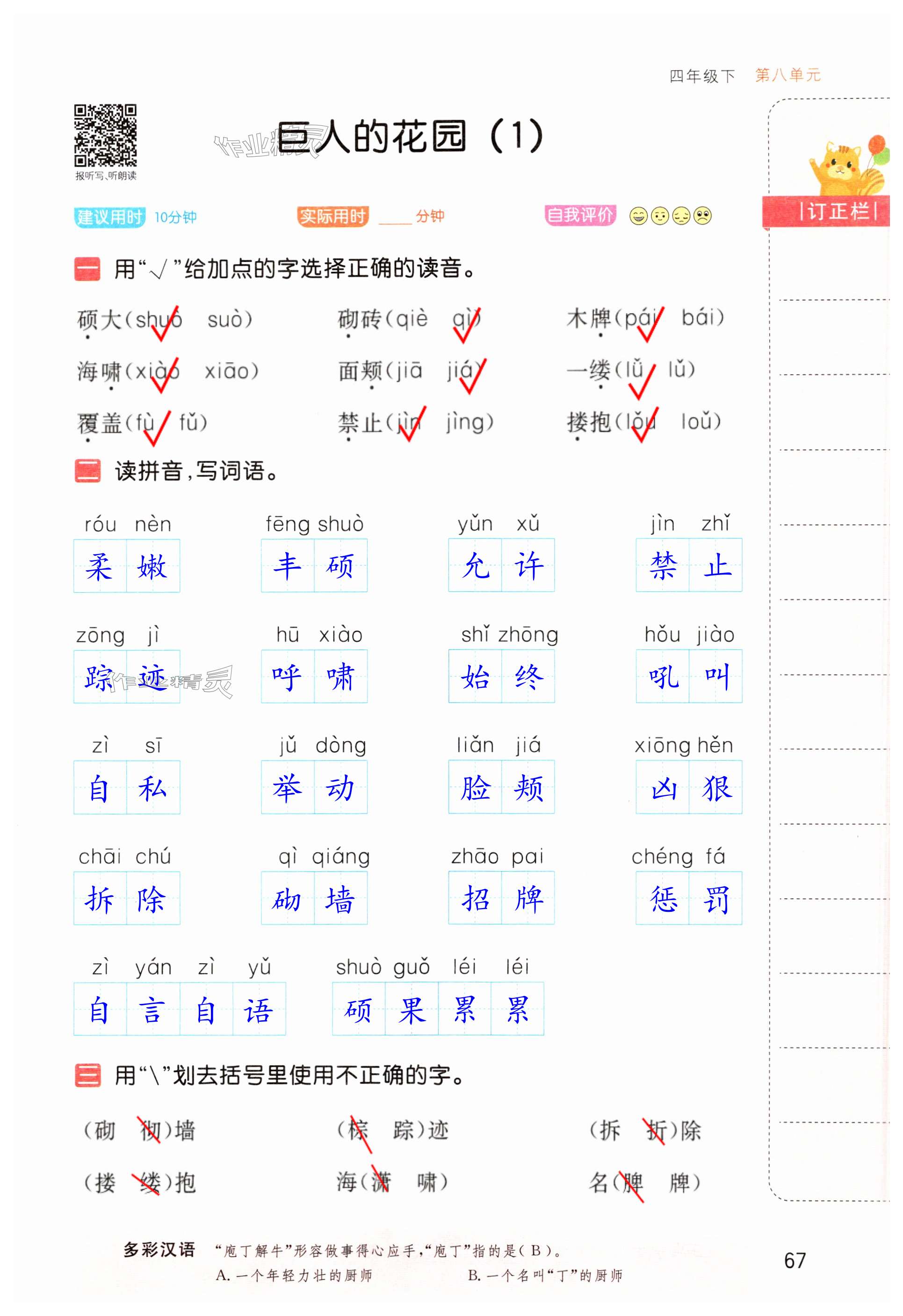 注:目前有些书本章节名称可能整理的还不是很完善,但都是按照顺序排列的,请同学们按照顺序仔细查找。练习册 2025年默写大通关四年级语文下册人教版 答案主要是用来给同学们做完题方便对答案用的,请勿直接抄袭。