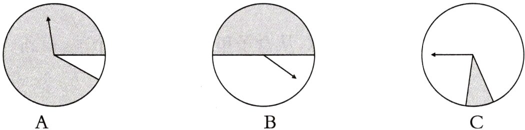 1. 转动哪个转盘,指针停在阴影区域的可能性最小?