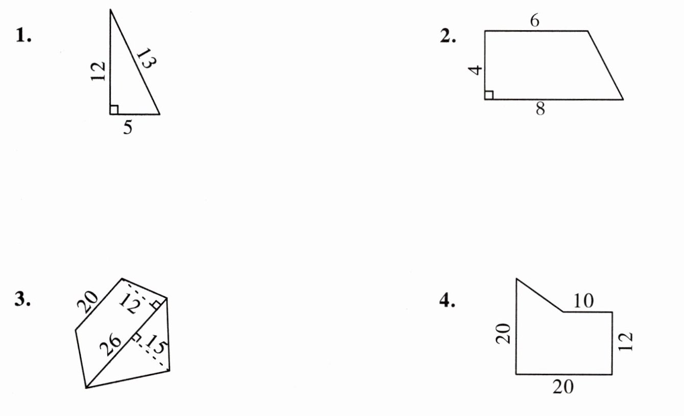 3. (20 + 26)×12÷2 + 26×15÷2 = 471(dm²)
