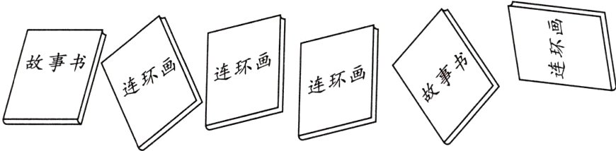 3.明明不小心把两本故事书和四本连环画散落在地上。