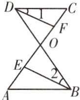 已知:如图所示,AC,BD相交于点O,DF平分∠CDO交AC于点F,BE平分∠ABO交AC于点E,∠A = ∠C. 求证:∠1 = ∠2.