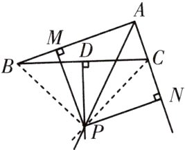 例题 如图,在△ABC中,∠BAC的平分线与BC边的垂直平分线相交于点P. 过点P作AB,AC(或延长线)的垂线,垂足分别为M,N. 求证:BM = CN.