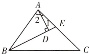 15. 如图所示,在$\triangle ABC$中,$BE$是角平分线,$AD\perp BE$,垂足为$D$. 求证:$\angle 2=\angle 1+\angle C$.