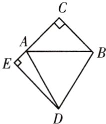 16. 如图所示,在△ABC中,∠ACB = 90°,AC = BC,D为△ABC外一点,且AD = BD,DE⊥AC交CA的延长线于点E. 试探求ED,AE和BC之间有何数量关系.