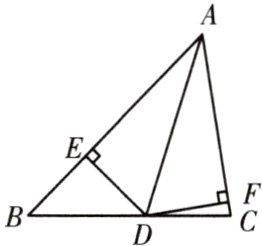 14. 如图所示,D为△ABC的边BC上的一点,过点D分别作DE⊥AB于点E,DF⊥AC于点F,且DE = DF.