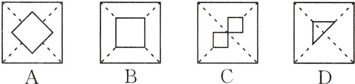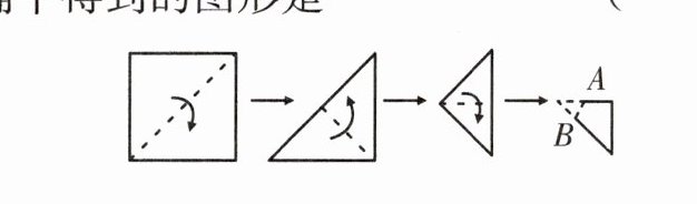 15. 如图所示,将正方形纸片三次对折后,沿图中$AB$线剪掉一个等腰直角三角形,展开铺平得到的图形是( )