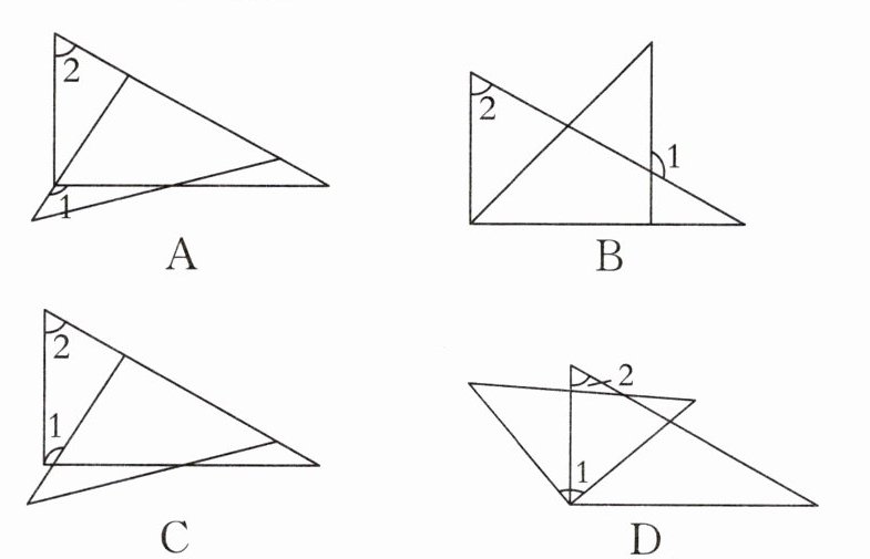 经典例题2 (黑龙江绥化.中考)将一副三角尺按如图方式进行摆放,∠1与∠2不一定互补的是 ( )