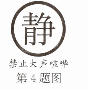 4. 如图所示是某中学张贴的文明习惯用语标示牌。从声音的特性分析,“大声”是指声音的________(选填“音调”“响度”或“音色”)大;从控制噪声的途径分析,这是在________处避免噪声的产生。