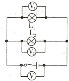跟踪训练 如图所示,灯泡L₁比L₂亮,电压表V₂示数为6 V。下列说法正确的是( )