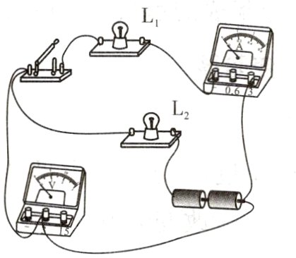 7. 如图所示是小文同学研究串联电路中电流、电压特点的实物连接图,当开关闭合时,灯L₁亮,灯L₂不亮,这时电流表和电压表均有示数。则故障原因可能是 ( )