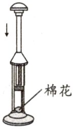 向下压活塞时,压缩气体,对气体做功,使内部的气体内能增大,温度升高,达到乙醚的燃点,乙醚燃烧。在这个过程中机械能转化为内能,能量转化情况与内燃机的压缩冲程相同。