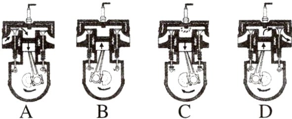 选C。做功冲程的特点:进气门、排气门关闭,活塞向下运动,内能转化为机械能。故选C。A是吸气冲程,B是压缩冲程,D是排气冲程。