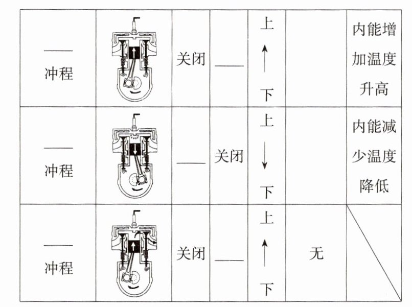 (2)①打开 下 汽油和空气 ②关闭 上 机械 内 ③火花塞 高温高压 内 机械 ④关闭 打开 上